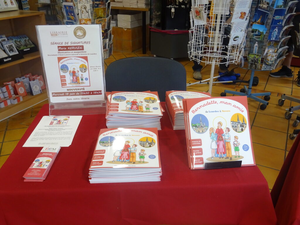 Avec la participation des deux Sanctuaires de Lourdes et de Nevers, de Marie Kervizic, illustratrice et maquettiste, descendante d’Henri Lasserre, miraculé et premier historien de Lourdes.